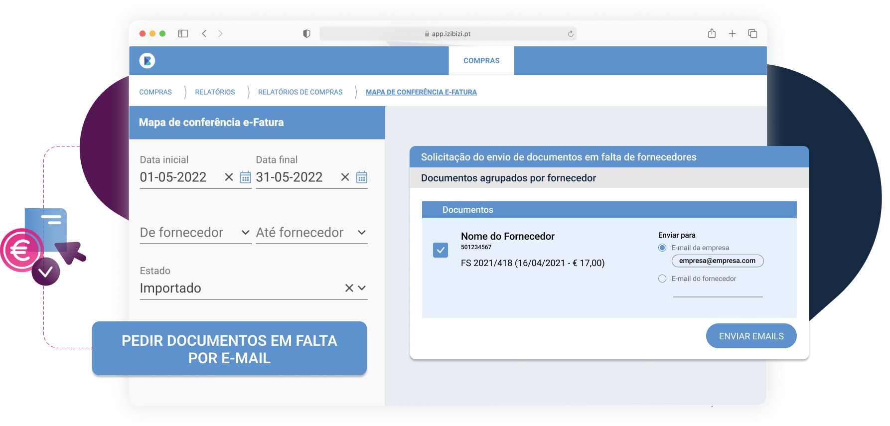 • Solicite as faturas em falta aos fornecedores por e-mail
