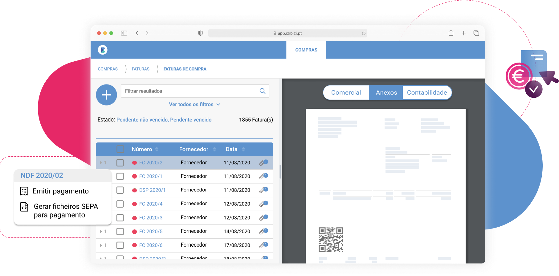 Controle as despesas com fornecedores e guarde todos os documentos num único local através do registo automático das faturas e do seu arquivo digital.