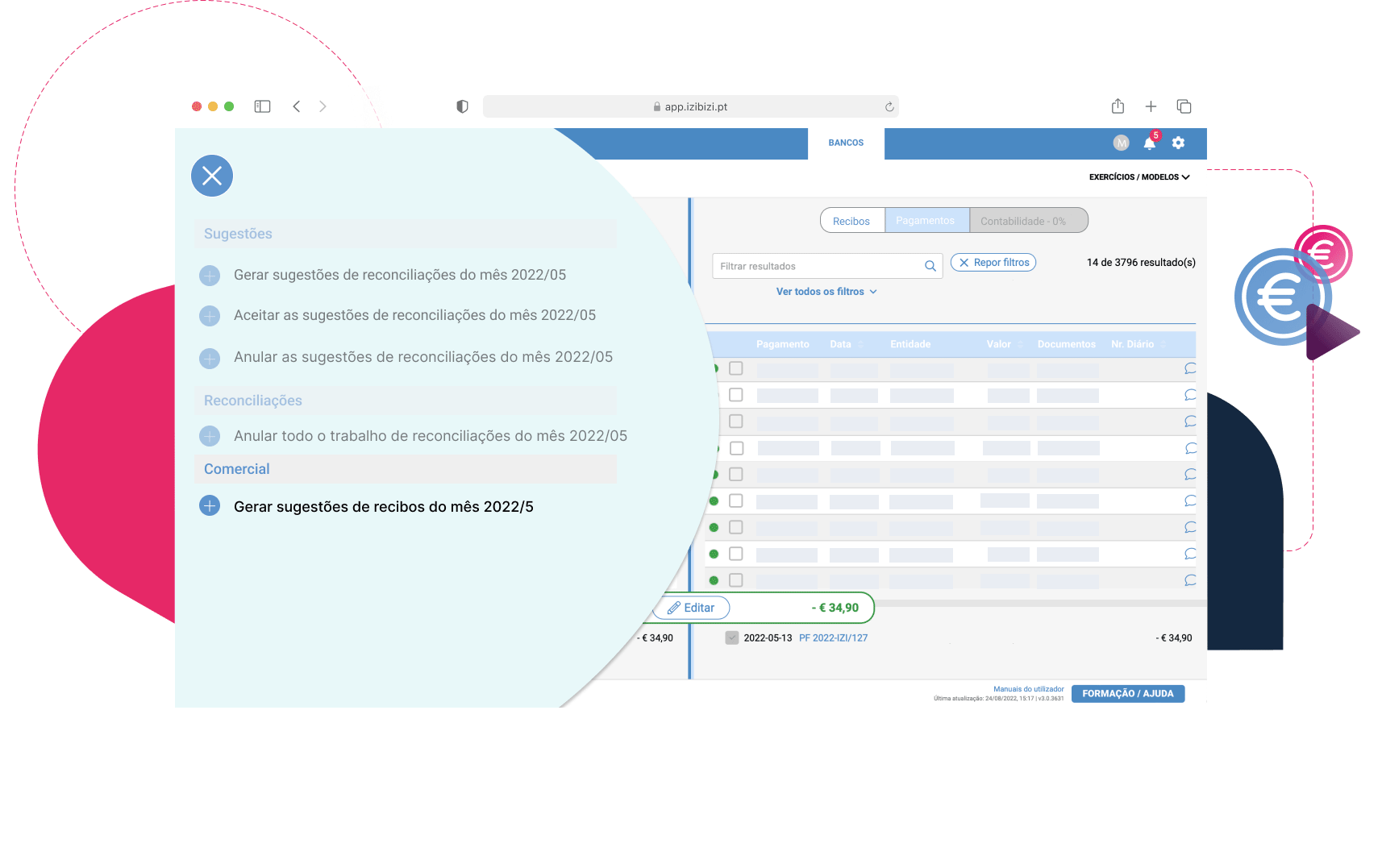 • Beneficie da comparação automática dos créditos no extrato com as faturas emitidas e torne mais simples a criação e envio de recibos a clientes