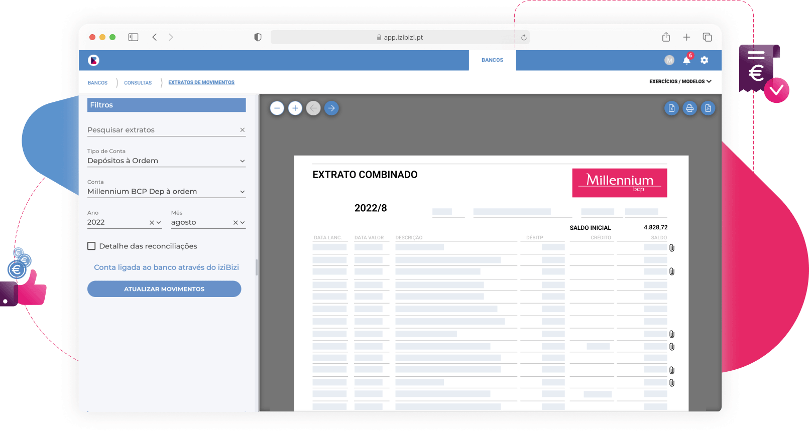 • Consulte os documentos a partir do extrato bancário