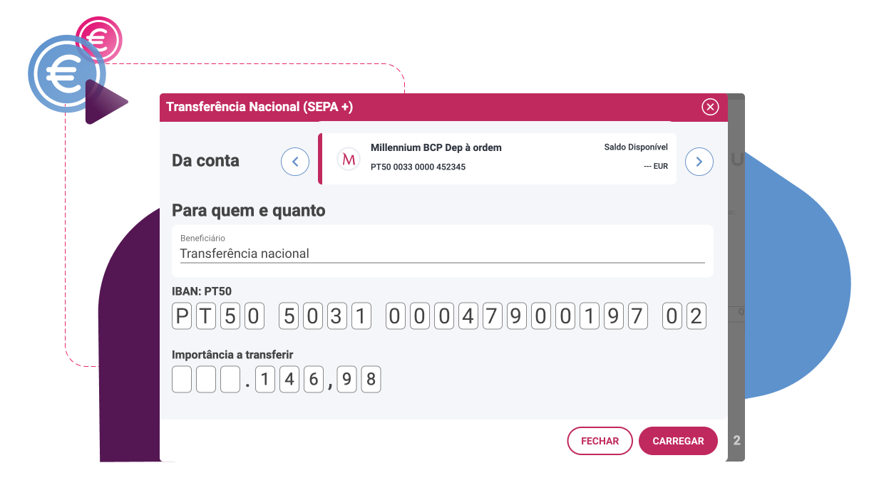• Transfira facilmente dinheiro entre contas de qualquer Banco
