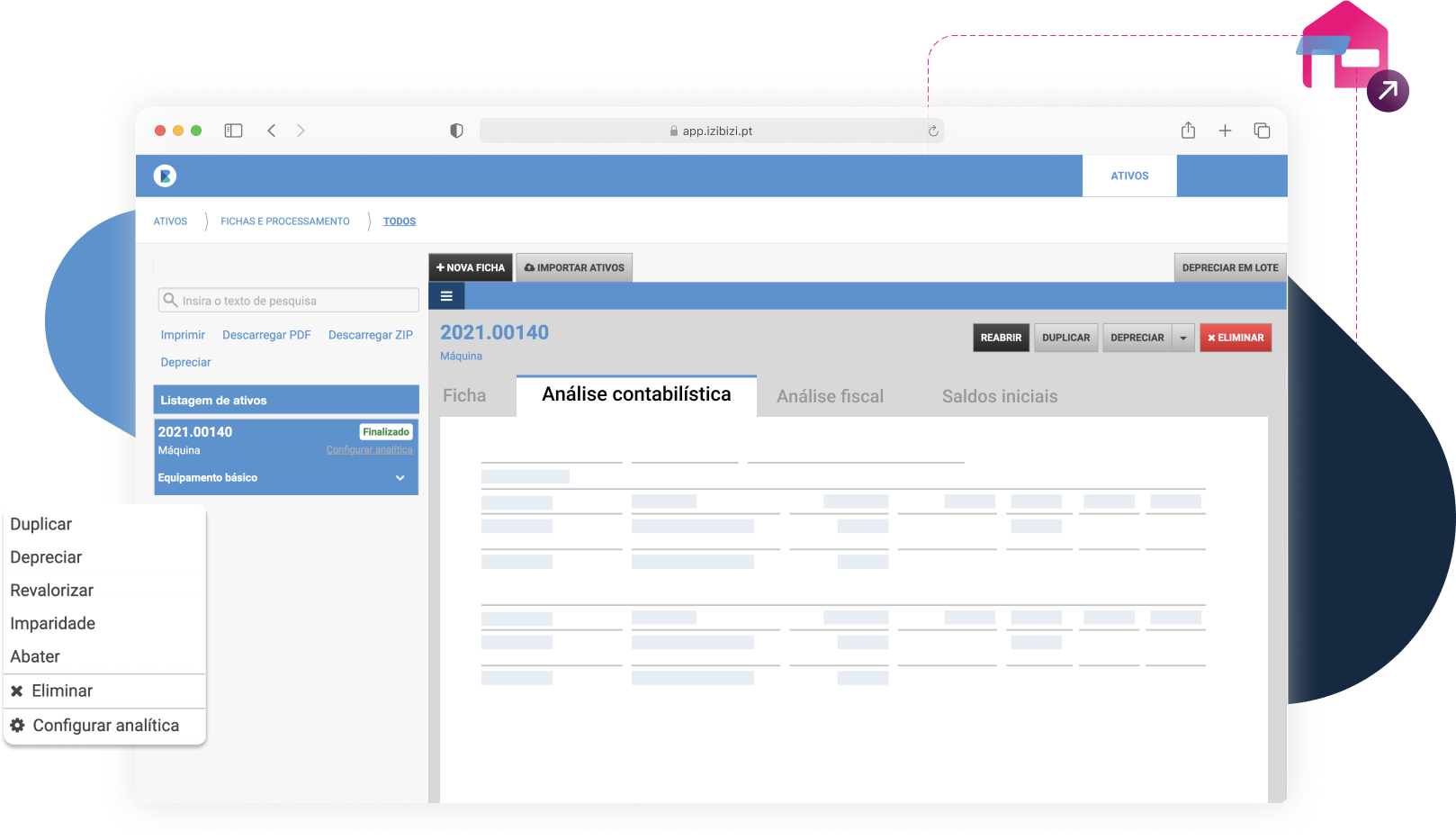 Obtenha o cálculo automático das depreciações e do valor contabilístico e fiscal dos ativos a cada momento.