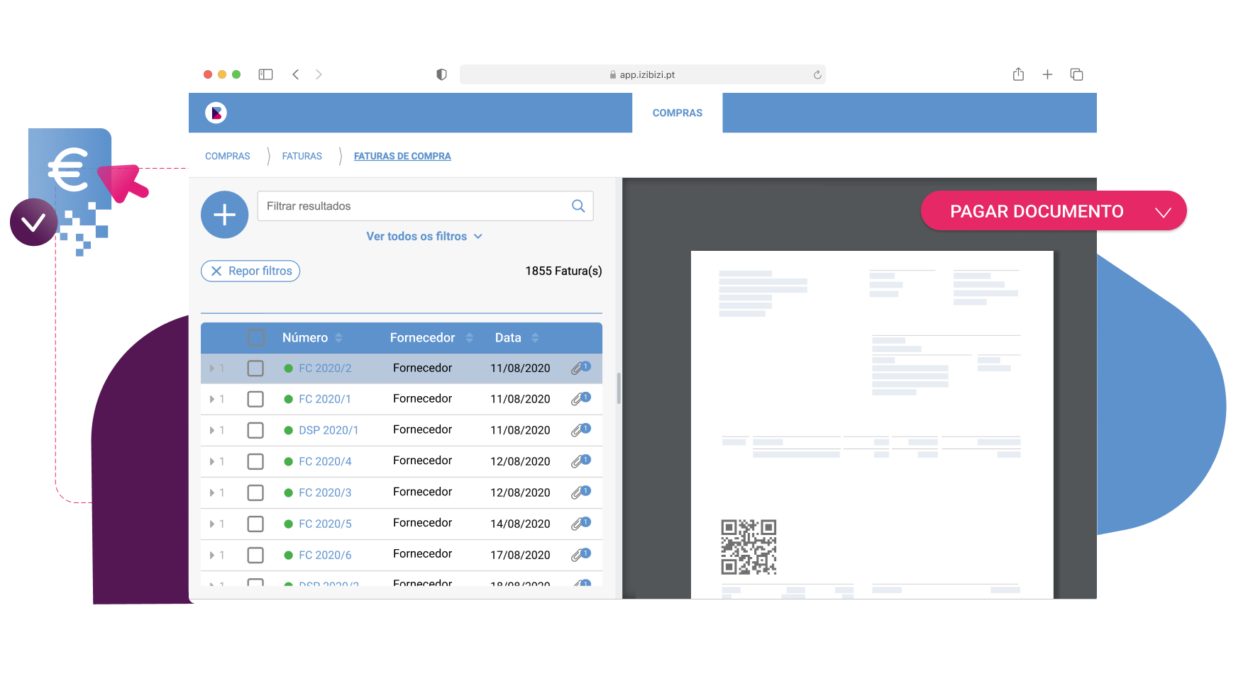 Controle as despesas com fornecedores e guarde todos os documentos num único local através do registo automático das faturas e do seu arquivo digital.