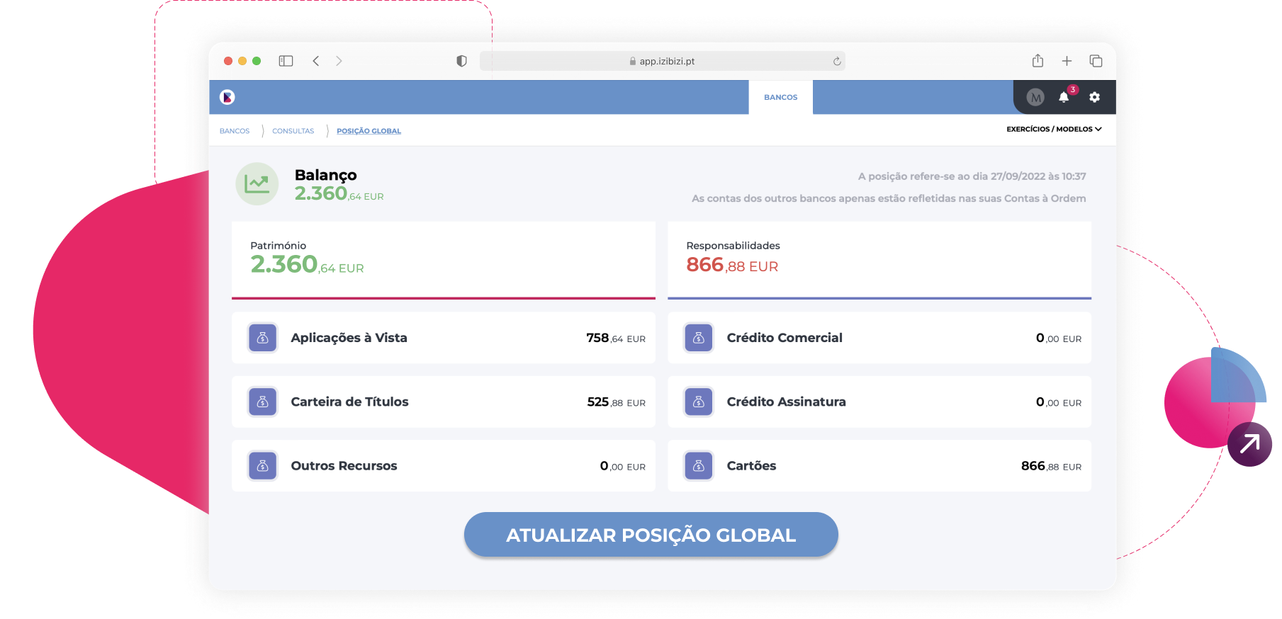 Conheça a posição global do seu negócio ao associar os Bancos onde tem as suas contas e evite surpresas.