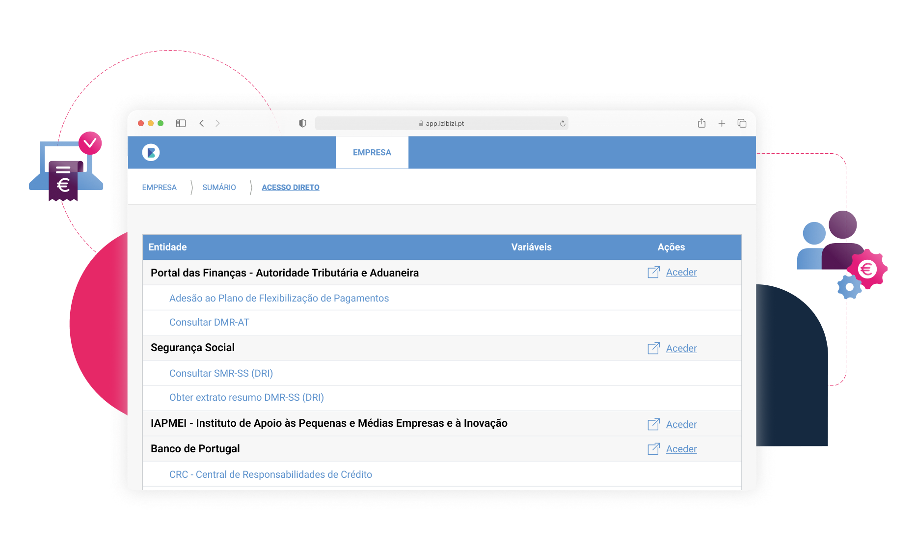 • Tenha acesso direto aos portais das Finanças, Segurança Social e outras entidades a partir do cofre de senhas