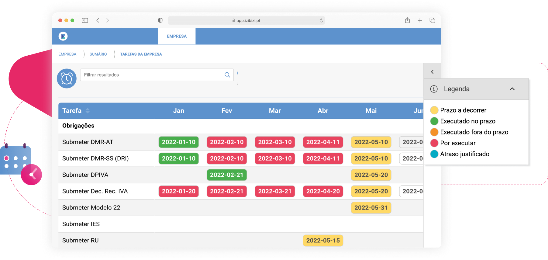 Assuma o controlo de todas as suas obrigações e tarefas mensais e pague atempadamente os impostos.